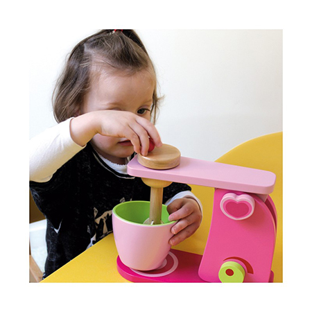 Mixerul de jucarie din lemn este jucaria ideala a micilor patiseri, dornici sa-si serveasca papuselele cu deserturi nemaipomenite sau sa-si impresioneze parintii.